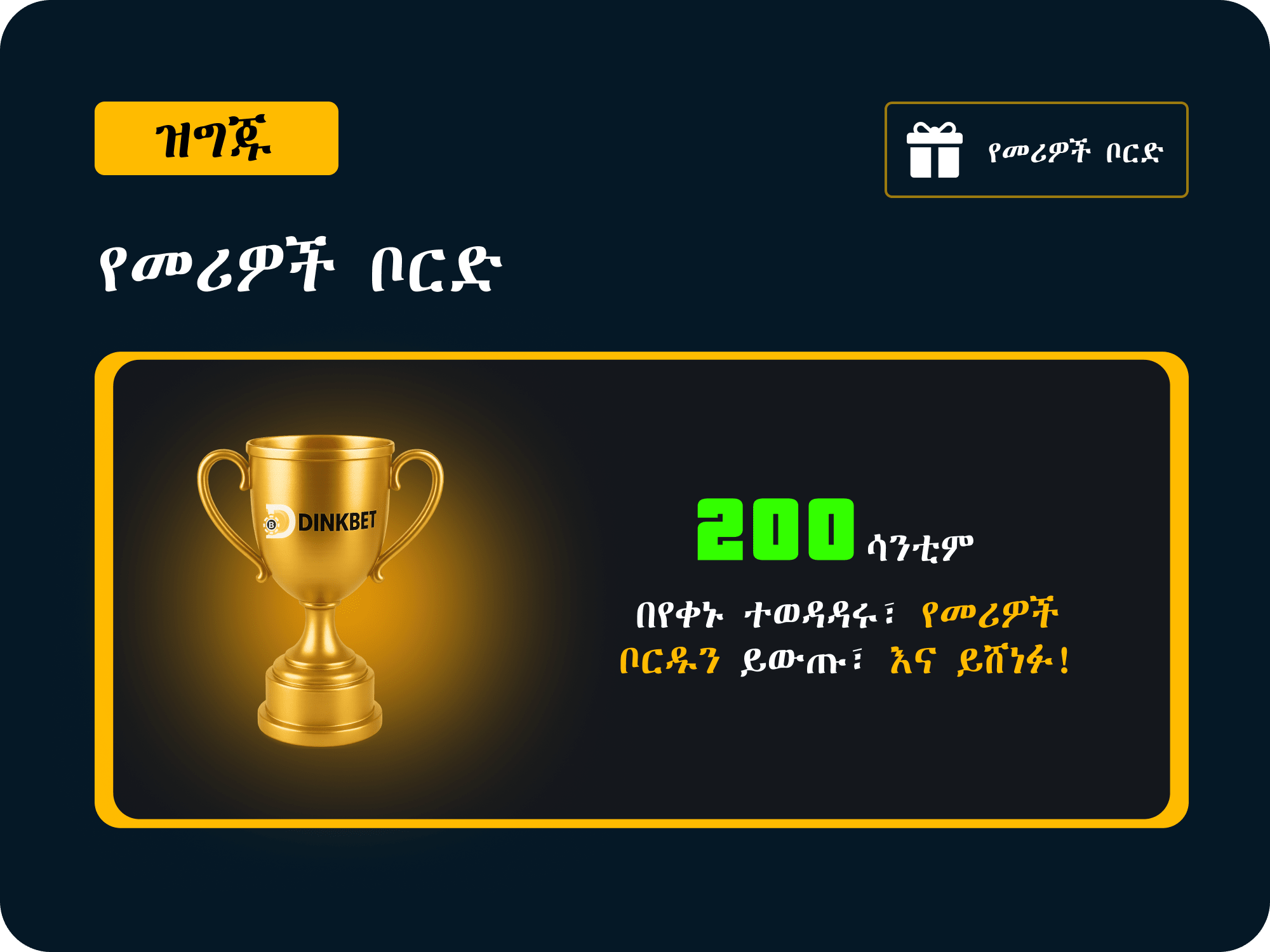 🚀 ጨዋታዎን ያሻሽሉ፣ በሊደርቦርድ ይቆጣጠሩ፣ እና 200 ብር 💰 ያሸነፉ! ሁሉም እንደ እንደምርትዎ ደረጃዎን ያደግሉ እና ወደ ምርጥ ክብር 🏆✨ በቅርብ ይደርሱ።